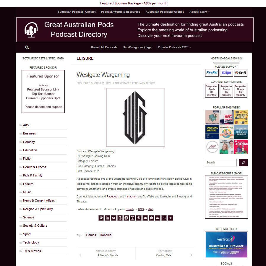 Great Australian Pods Podcast Directory: https://www.greataustralianpods.com/westgate-wargaming/