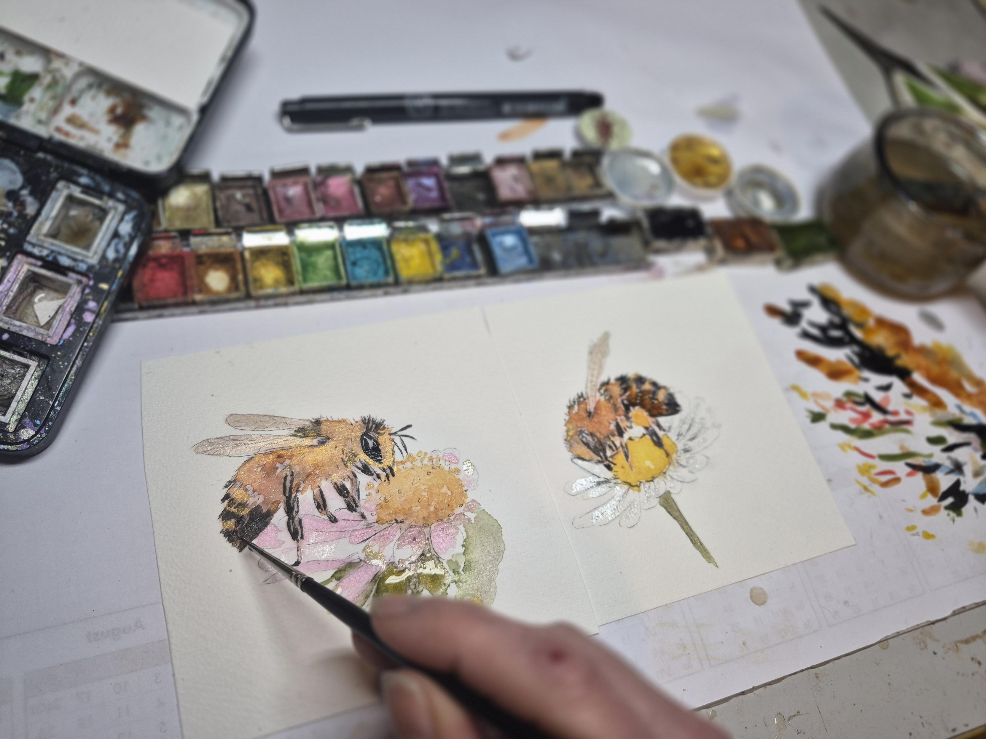 #bee #bees #watercolor #watercolour #aquarell #art #artShop #fediart #mastoart #creativeToots